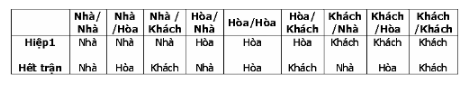 Người chơi chọn Đội nhà/ Đội nhà, tức là đội nhà phải thắng hiệp 1 và thắng cả trận.