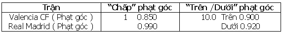 Người chơi có thể chọn từ bảng này các kết quả dự đoán đội bóng hòa hoặc thắng trong hiệp 1 và cả trận.
